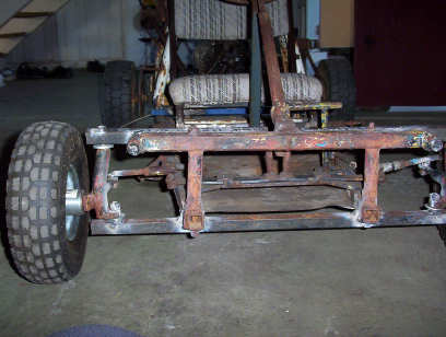 "i didn't make the chassis its the original. the steering is different because i had to remake it because that suspension setup was broken and not worth fixing, i didn't get any plans for it i just looked at what i had to use and thought about it for a while and disided to do it the easiest way possible, the king pings were on the other setup so i reused them because they were still good, i don't now why there bent its just the way they were made i guess."